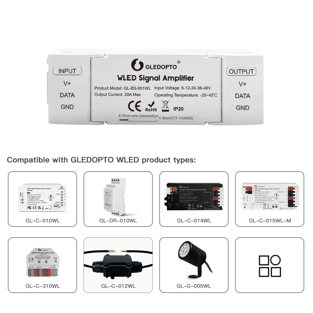 Gledopto GL-BS-001WL WLED Digitálny Zosilňovač Signálu: Pre bezchybné osvetlenie na dlhé vzdialenosti