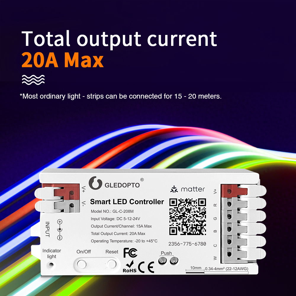 Gledopto GL-C-208M Matter RGBCCT LED Ovládač – Nová éra smart osvetlenia