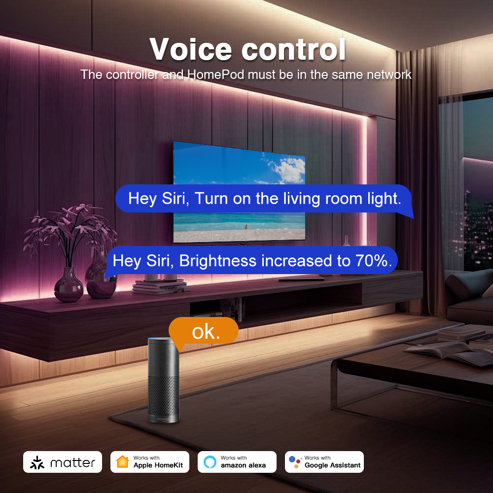 - Hlasové ovládanie: Vďaka Matter kompatibilite môžete ovládať svetlá hlasovými asistentmi.