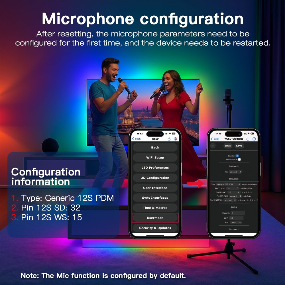 - Vstavaný mikrofón (AudioReactive): Integrovaný mikrofón umožňuje synchronizáciu svetelných efektov s hudbou a okolitými zvukmi, čím vytvára pohlcujúce audiovizuálne zážitky.