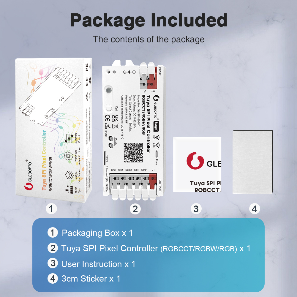 Gledopto GL-SPI-206W je ideálne riešenie pre každého, kto hľadá spoľahlivý, výkonný a plne vybavený ovládač pre adresovateľné LED osvetlenie s jednoduchou integráciou do smart domácnosti Tuya.