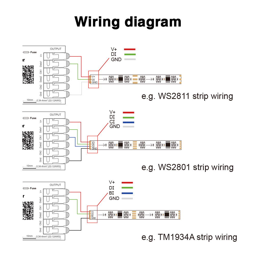 - Univerzálna kompatibilita: Podporuje širokú škálu SPI LED čipov, vrátane populárnych WS2811, WS2812B, SK6812, TM1814B, WS2805 a mnohých ďalších, čo zaisťuje maximálnu flexibilitu pre rôzne LED pásiky. Predvolený typ čipu je WS2811.