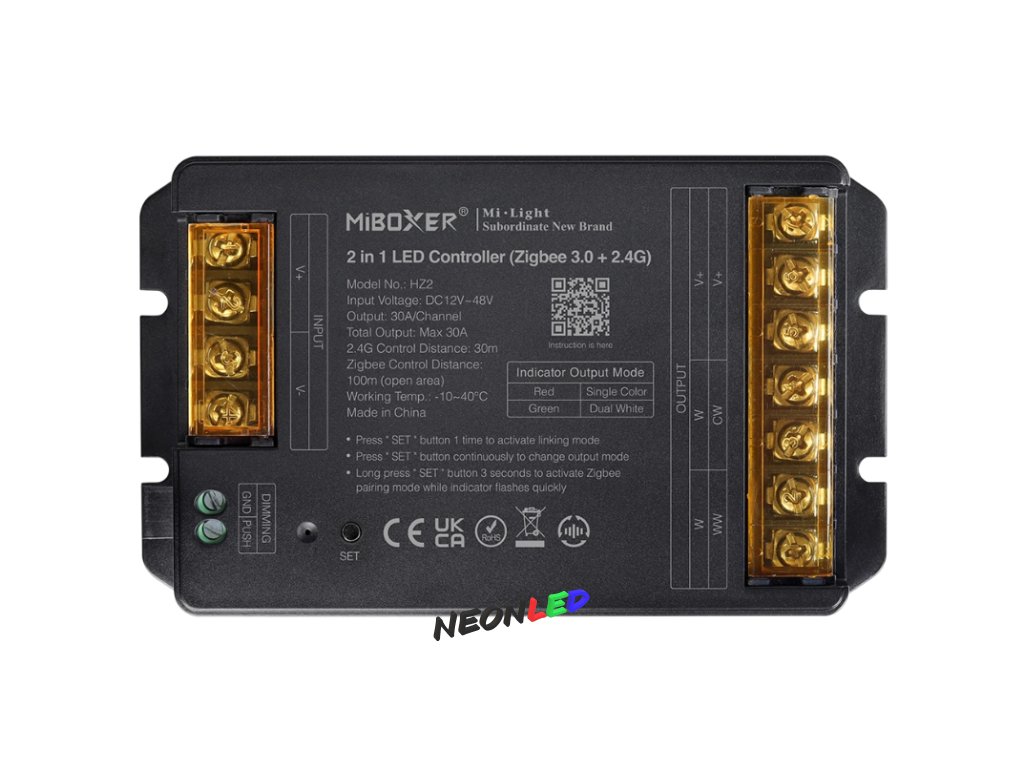 HZ2 Zigbee 3.0 + RF 2,4 GHz Smart LED kontrolér 2v1 pre MONO a CCT LED, max. 30A
