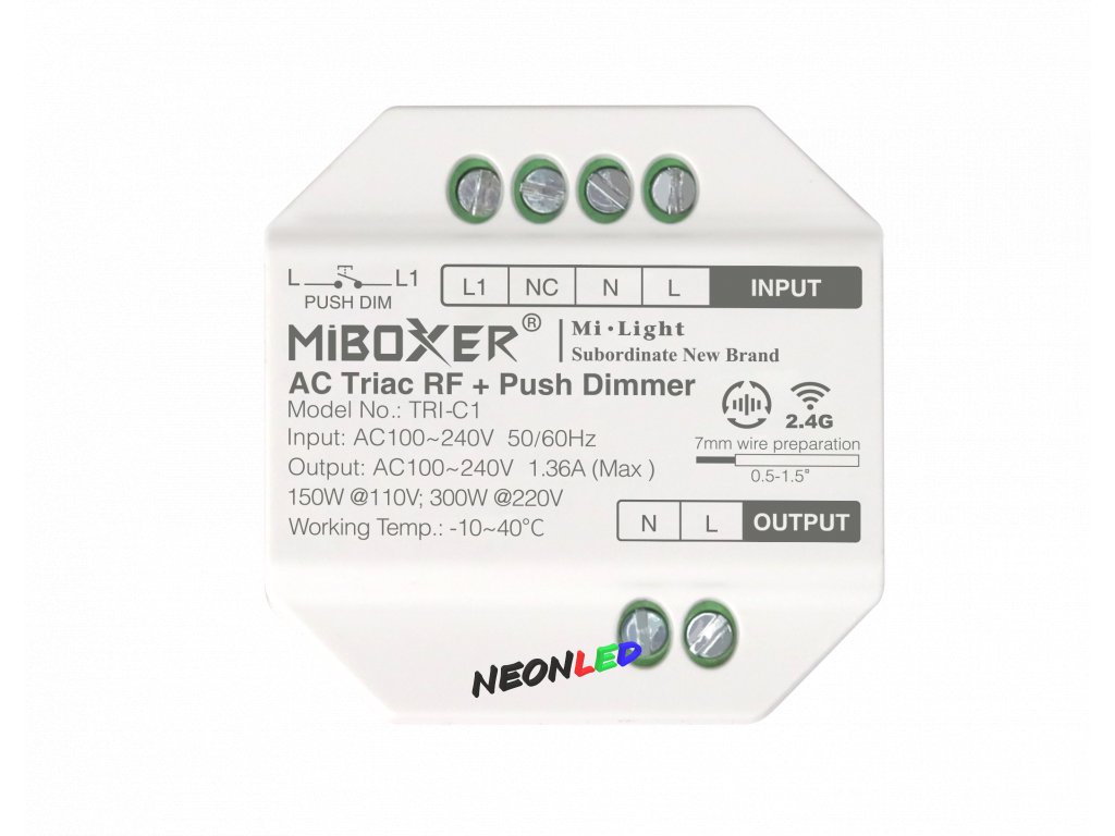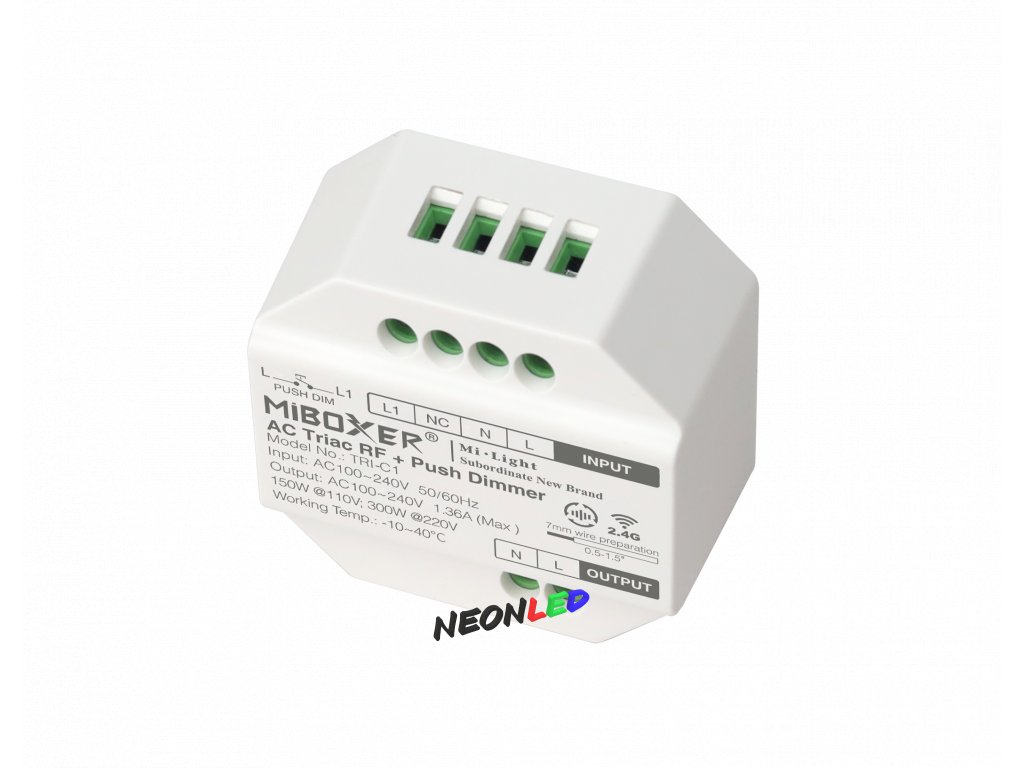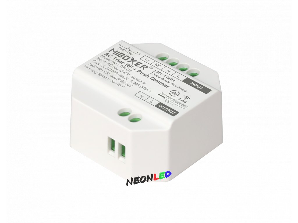 TRI-C1 triakový stmievač RF 2,4GHz + tlačidlo, 230VAC, 300W