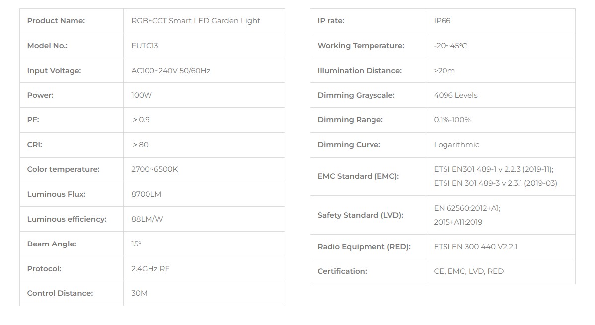 MiBoxer FUTC13 100W Smart RGB+CCT LED záhradné svietidlo (2.4GHz)