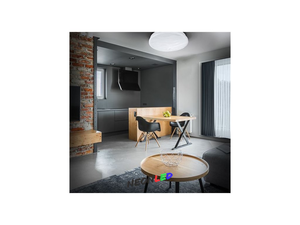 - Okrúhly tvar a minimalistické prevedenie (materiál Fe + PS) s rozmermi Ø380 x 65mm sa ľahko začlení do akéhokoľvek interiéru – obývacej izby, spálne, kuchyne alebo pracovne.