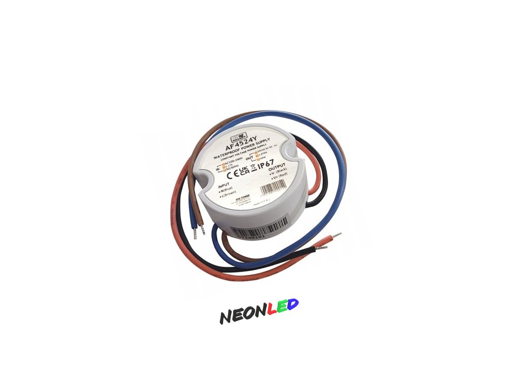 MW Power AF4524Y: Okrúhly LED zdroj 45W 24V/1,87A IP67 – Zmestí sa do krabice Ø60mm