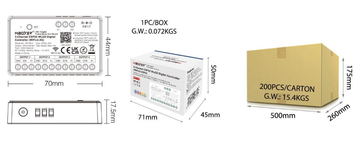 MiBoxer SPI-WL4: 4-kanálový WLED ovládač s ESP32 a WiFi/2.4G – Až 4 x 1000+ pixelov na kanál