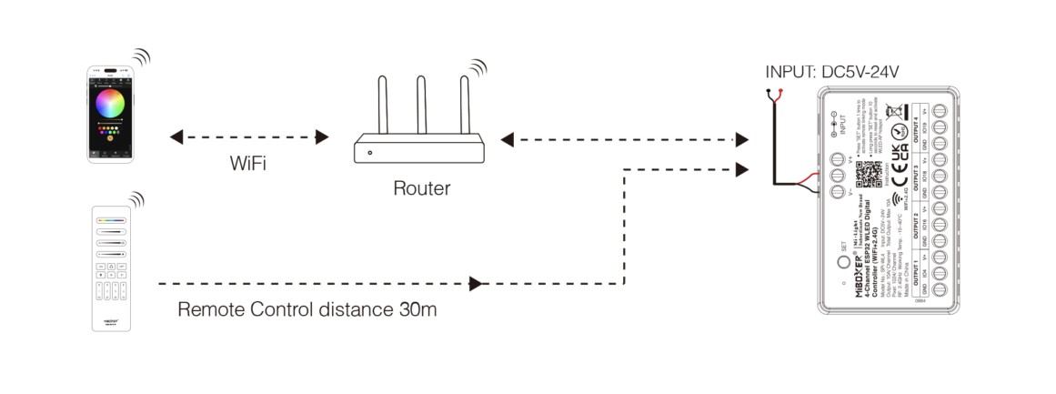 - Smart & RF ovládanie: Kombinuje to najlepšie z oboch svetov. Použite WiFi (2.4GHz) pre ovládanie cez aplikáciu a integráciu s Amazon Alexa / Google Assistant, alebo využite 2.4G RF pre rýchle ovládanie pomocou diaľkových ovládačov MiBoxer bez nutnosti pripojenia k sieti.