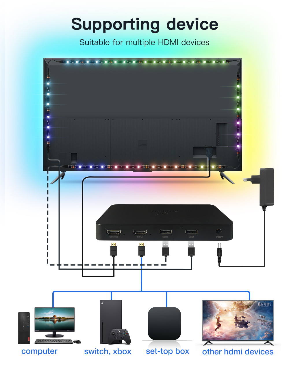 Gledopto GL-SN-003K LED TV Ambilight Kit HDMI 2.0 Synbox + LED pásik pre uhlopriečku až 65 palcov