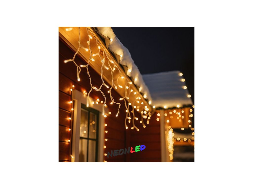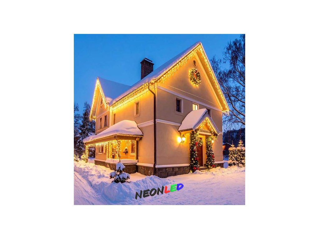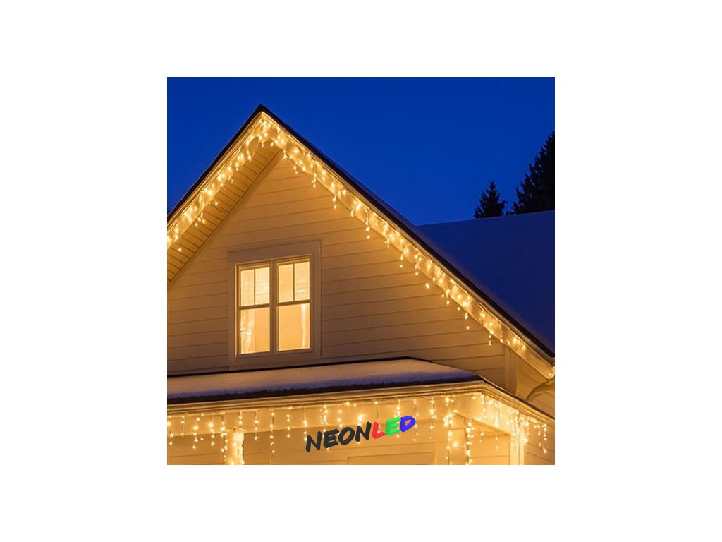 - Pôsobivý vizuálny efekt: Celkovo 360 úsporných LED diód vyžaruje príjemné teplé biele svetlo, ktoré navodzuje útulnú a slávnostnú atmosféru. Svetelná časť s dĺžkou 9 metrov a cencúľmi s výškou až 0,7 metra zaručuje, že vaša dekorácia bude viditeľná už z diaľky.